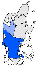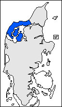 1) = forfrossen, forkommen af kulde [Hards´SV, Sydjy, SønJy (nord for rigsgrænsen), spredt i øvrige MVJy (±Ø), spor. i Him og MØJy; se kort]