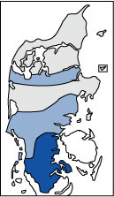 6) = undertiden, somme tider, nu og da [Sønderjy (dog kun spredt i ´NV og på Vadehavsøerne), spredt i Sydjy, MØJy´S og Midtjy´N, spor. i øvrige Midtjy og i Nordjy; se kort]